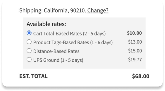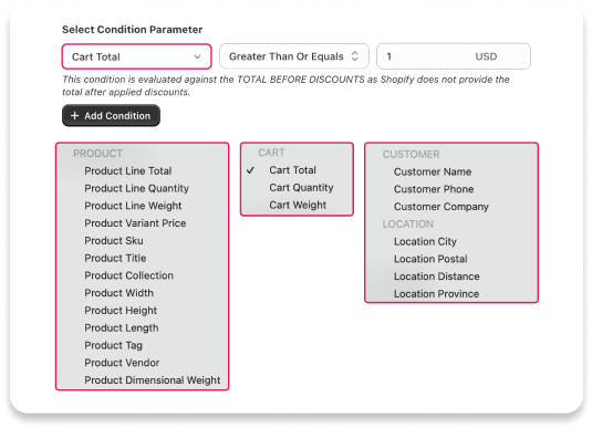 Take control of your Shopify store’s shipping strategy with Advanced Shipping Calculator—designed to handle even the most complex shipping needs that the Shopify default shipping settings can’t handle. With the ability to create customized shipping rules using 20+ condition parameters, this app gives you full control over your shipping process. With this app, you can create conditional shipping rules based on: